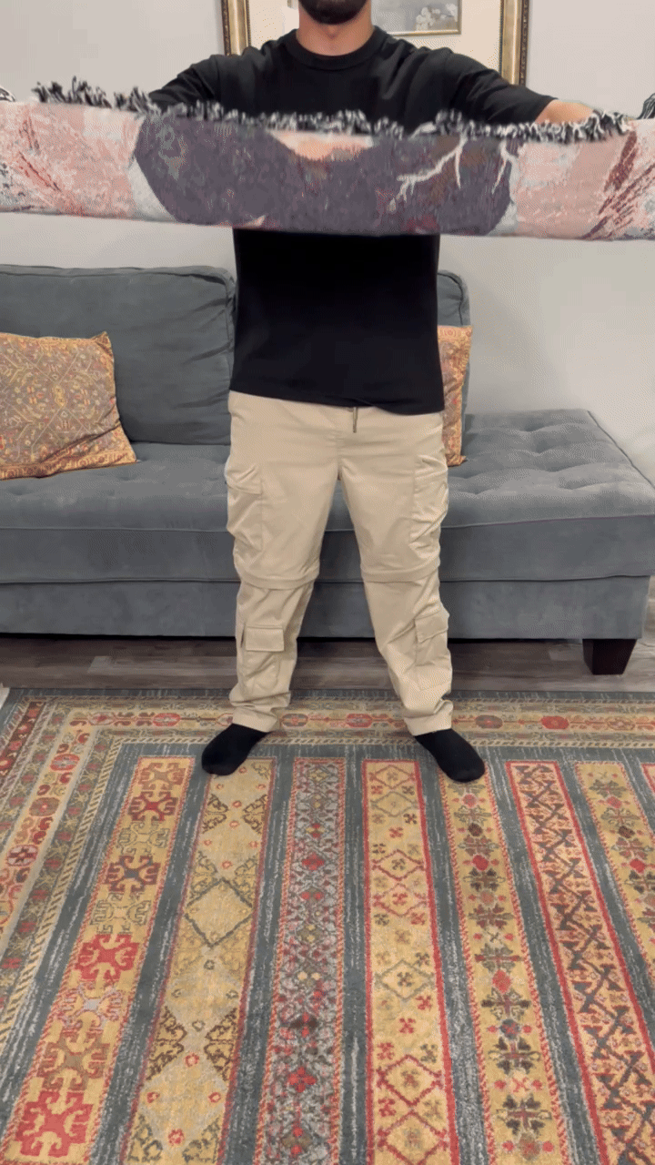 Sieh zu, wie sich unsere handgewebte Gothic-Decke langsam entfaltet. Jedes Stück wird aus 100 % Baumwolle gefertigt und vereint Komfort, Mystik und Eleganz. Die perfekte Mischung aus Gemütlichkeit und Gothic-Stil – gemacht, um dein Zuhause in ein Reich der Schatten zu verwandeln.